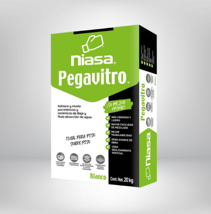 Adhesivo blanco convencional con tecnología para la instalación de pisos y azulejos de alta, media y baja absorción de agua, sobre mortero o concreto rugoso. Para interior en uso residencial